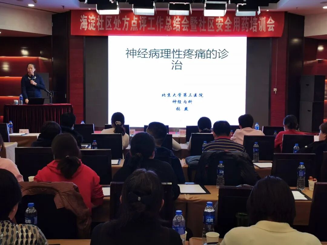 下午会议内容以社区慢性病、常见病安全用药知识培训为主,由海淀区医院管理中心药事科孙桂蓉科长主持。石景山康复医院药学部杜广清、北医三院药学部闫盈盈、张燕和海淀医院李静四位药学主任,分别做了后疫情下科学看待合理用药中的问题、老年人多重用药管理、神经性病理性疼痛专题知识培训和社区处方点评工作心得及案例分享。